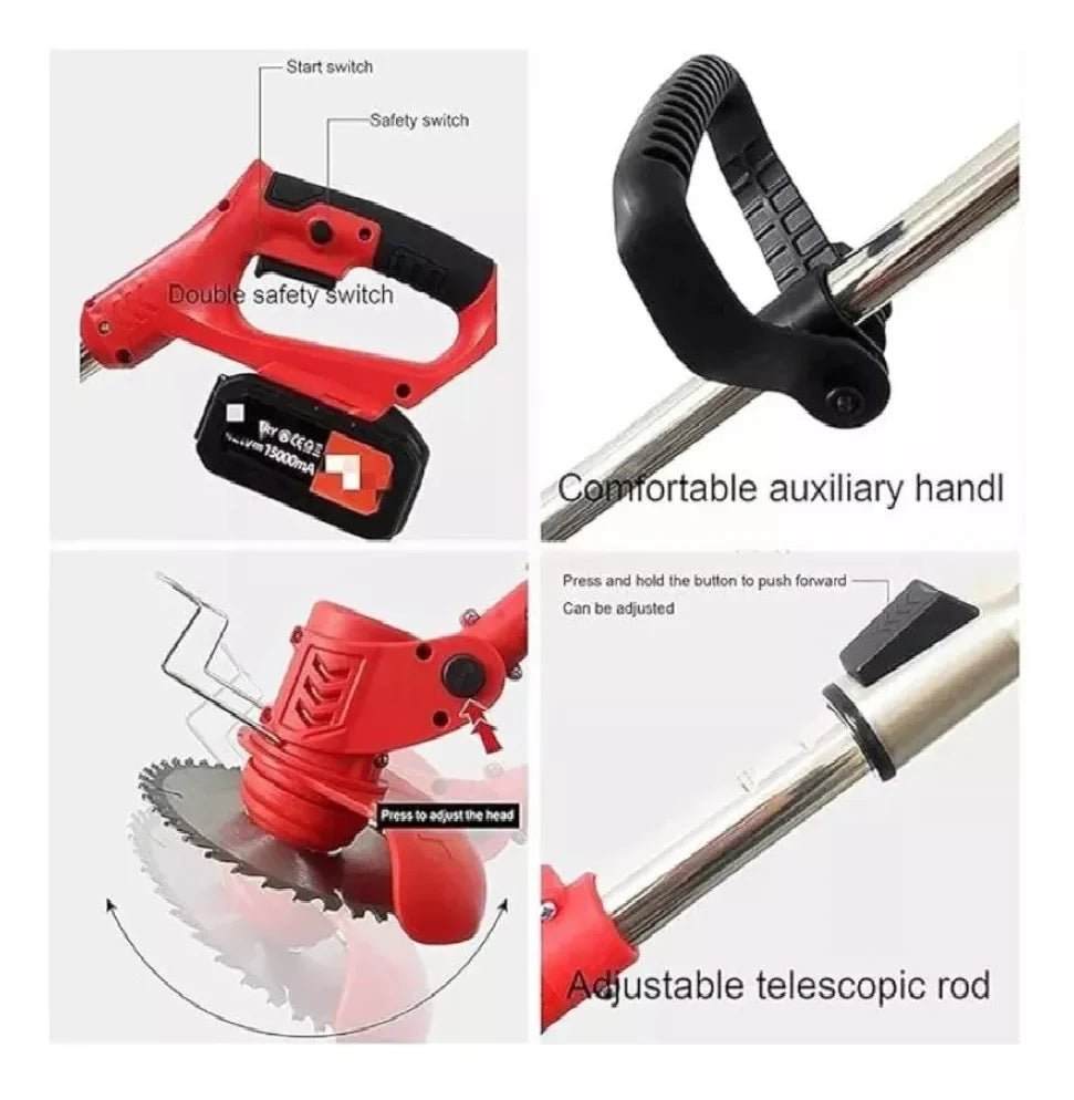 🌿 Sin cables, sin gasolina — Olvídate de enredos o de cargar galones. Funciona con 2 baterías recargables de 48V para máxima autonomía.